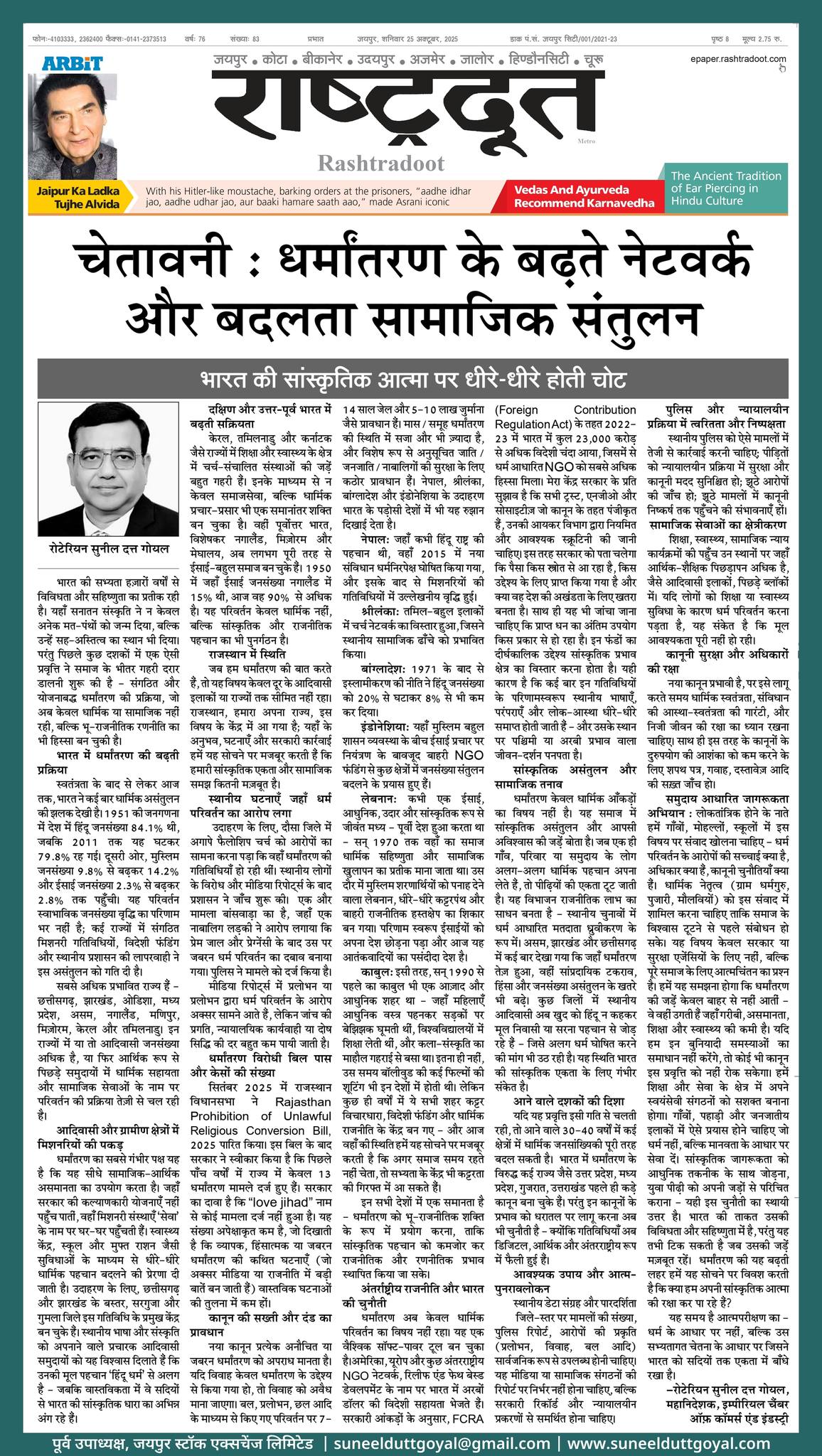 जनसांख्यिकी का चेतावनी-संकेत — समाज के लिए स्पष्ट आह्वान यह समय भावनाओं की नहीं, प्रमाणों की राजनीति का है—भारत की…