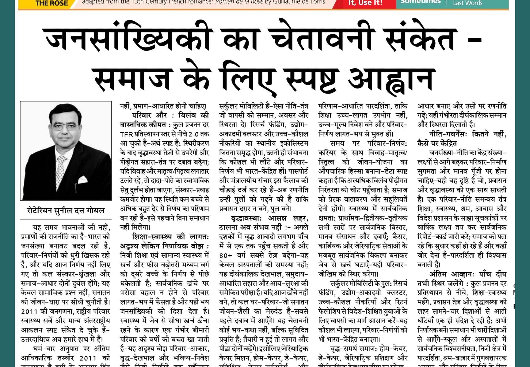 कुल प्रजनन दर प्रतिस्थापन से नीचे, शिक्षा–स्वास्थ्य महँगे, प्रवासन तेज़ और वृद्धावस्था की लहर सामने—चार दिशाओं से आती घंटियाँ एक ही संदेश दे रही हैं: अभी निर्णायक बनें। समाधान भी चारों दिशाओं से आएँगे—स्कूल और अस्पतालों में सार्वजनिक विश्वसनीयता, निजी क्षेत्र में पारदर्शिता, श्रम-बाज़ार में गुणवत्तापरक अवसर, और परिवार-निर्णयों के लिए सामाजिक–नीतिगत सहारा; सनातनी हिंदुओं के लिए संदेश स्पष्ट है—घर, कुल, गुरु, समाज और राष्ट्र—ये पाँच दीप तभी स्थिर जलेंगे जब आँकड़ों का सच स्वीकार कर आज नीति और व्यवहार में परिवर्तन लाया जाए; आज की निर्णायकता ही कल की परंपरा की रक्षा है।